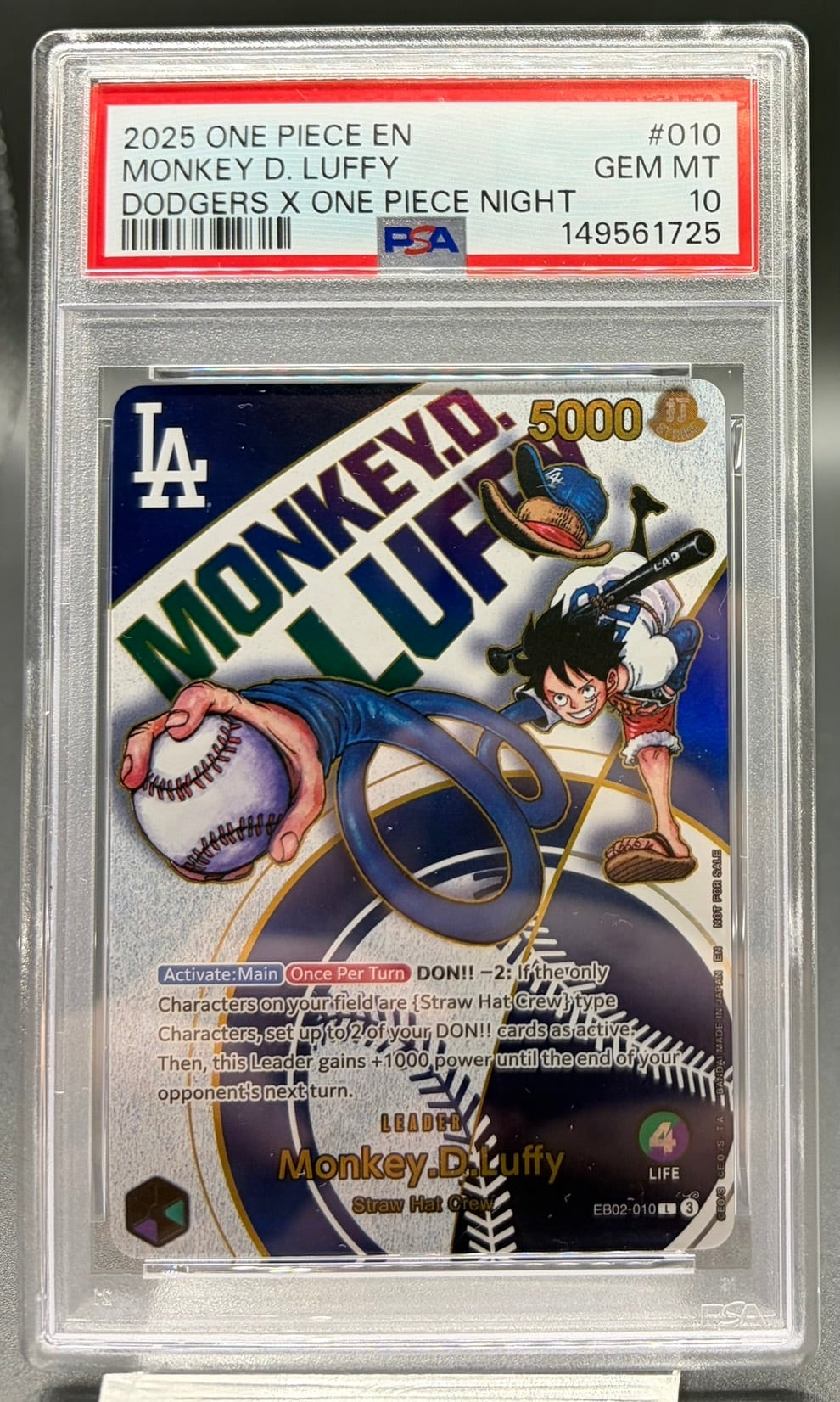 PSA10 モンキー・D・ルフィ(英語版/ドジャース)【L】{EB02-010}